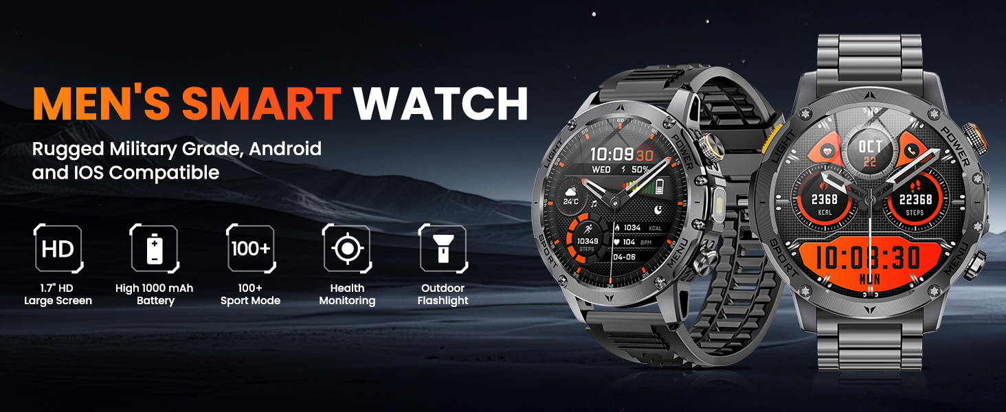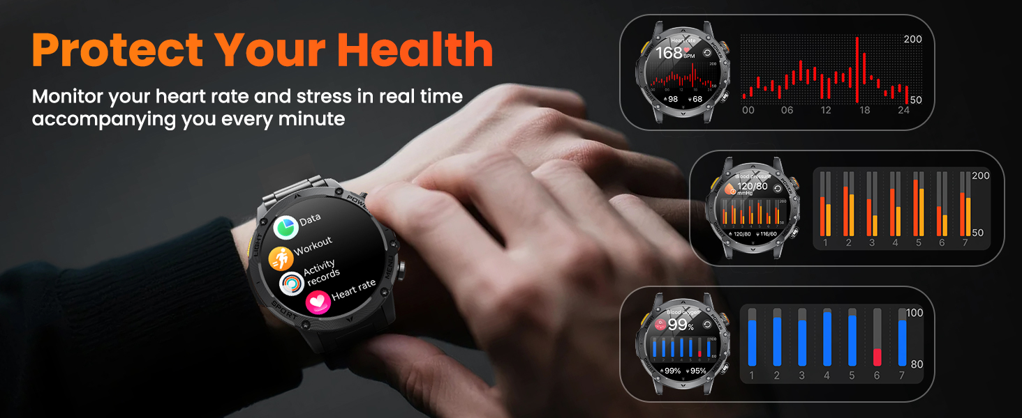 The AK87 Smartwatch is designed for people who demand more from their gear – whether at work, during workouts, or on outdoor adventures. Combining durable construction with advanced technology, this watch is your ultimate everyday and adventure companion.