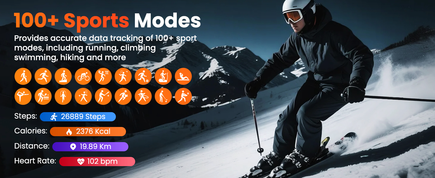 100+ Sports Modes & IP68 Waterproof