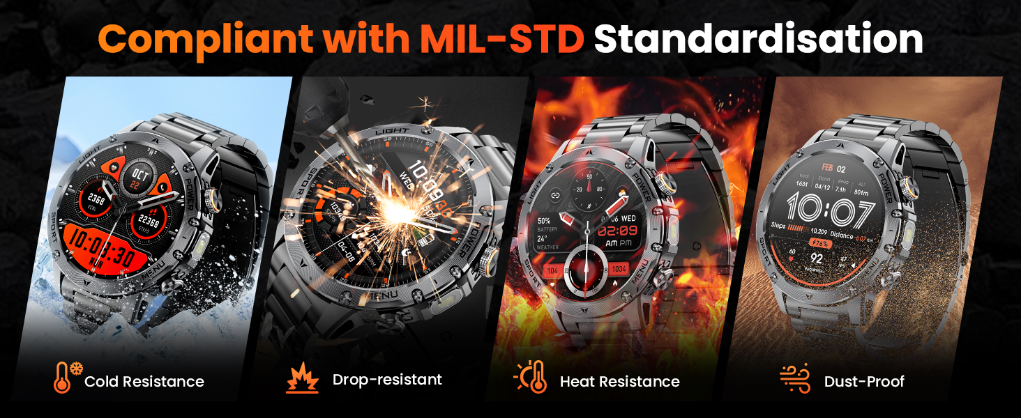 The case is made of a high-quality metal alloy, engineered to resist scratches, drops, and wear. Tested for temperature extremes, high altitude, dust, salt spray, and liquid exposure, it’s built to handle tough environments. -