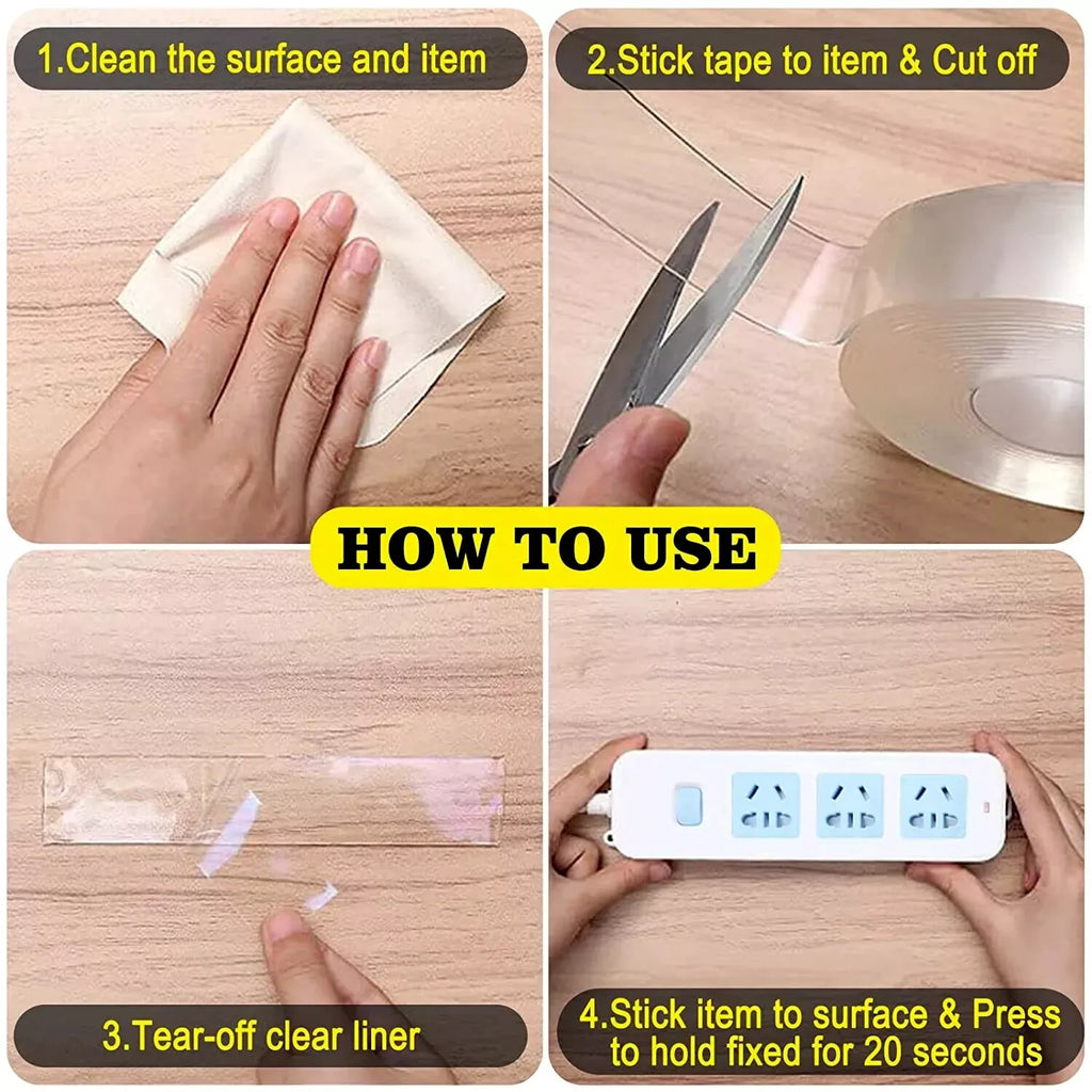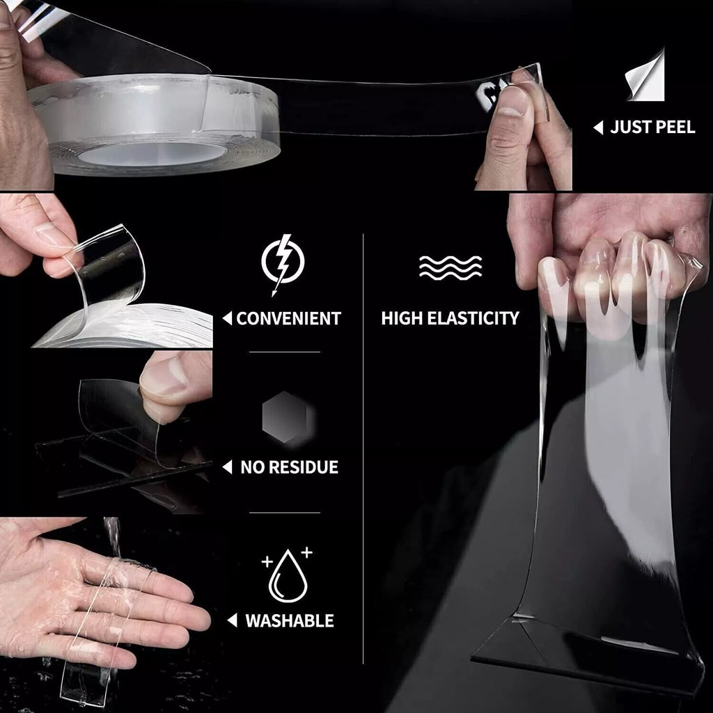 The ALIEN Nano Gel Tape is a heavy-duty, double-sided adhesive that replaces screws, nails, and rivets without causing damage to your surfaces. This transparent, washable tape works on a wide range of materials including glass, wood, metal, tile, PVC, marble, and more. Ideal for home, office, and decorative use, it offers strong adhesion while being removable without residue or damage.