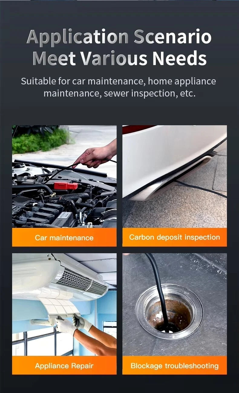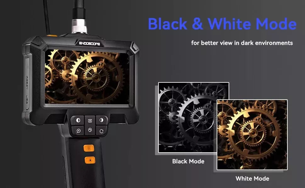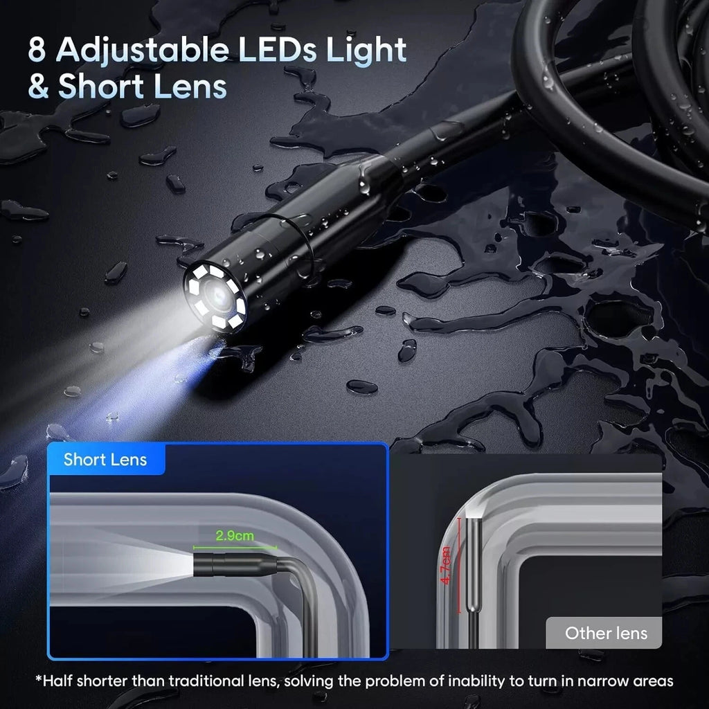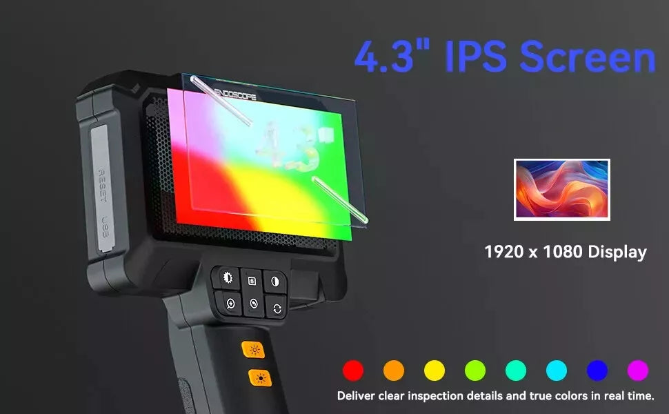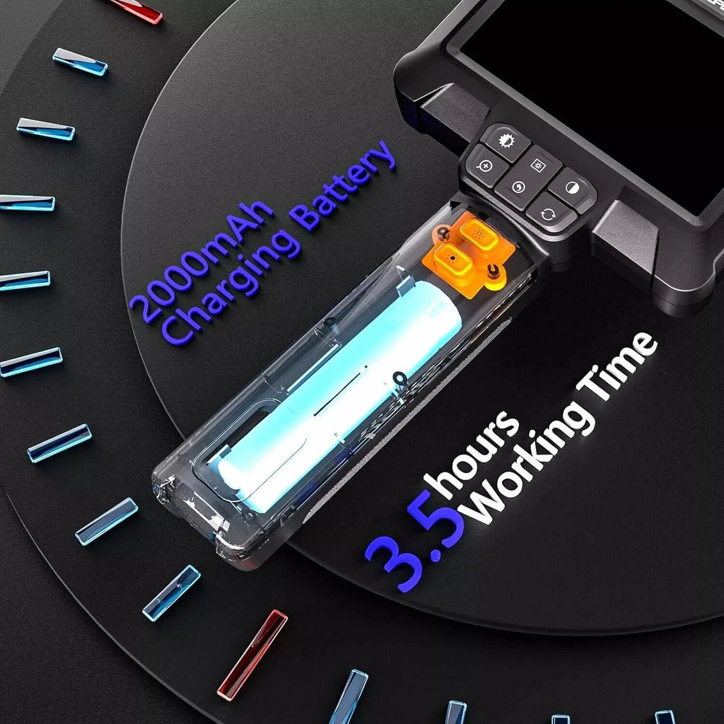 This ANESOK Industrial Handheld Endoscope Video Camera is the Perfect Tool for your Business, Shop, & at Home Needs. With a 4.3 inch IPS HD Screen and 1080P Resolution, you can Easily View and in the Tightest of Spaces with it's 8mm Probe Diameter & it's 5 Meter Long Semi-Rigid Cable. It Also Comes with Hook, Magnet, and Mirror Clip-On Accessories that make Grabbing, & Seeing in Tight Spaces Possible. This Camera is IP67 Waterproof and has a Working Time of 3-5 hours, Thanks to it's Large 2000mAh Lithium Battery. It Also Features 8 LED Lights that Make it Very Bright in the Darkest of Places. The Camera is Charged through a Type-C Charging Port. The ANESOK Brand Guarantees High-Quality Products, and This Model is No Exception.