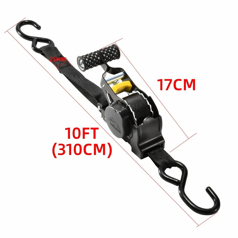 Auto Retractable Ratchet Strap – 1" x 10' | 1500lbs Heavy-Duty Cargo Tie Downs