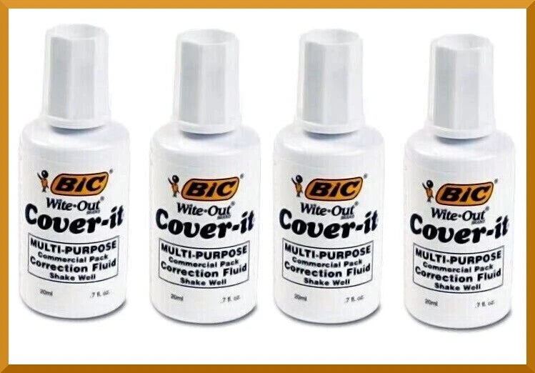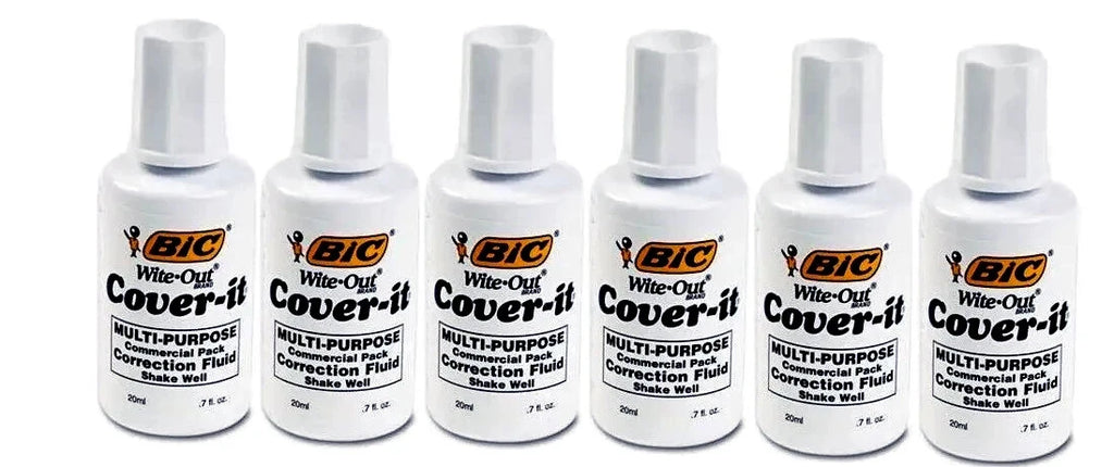 Whether typed or handwritten, mistakes are no match for the Bic BICWOC12DZ Wite-Out Cover-It corrective fluid! With an easy-to-use brush applicator, this 20 mL bottle smoothly dispenses white fluid to conceal accidental blunders on printed paper, copied documents, notebook paper, and other forms of stationary. In the office or in the classroom, this reliable tool is a must-have for any writer!