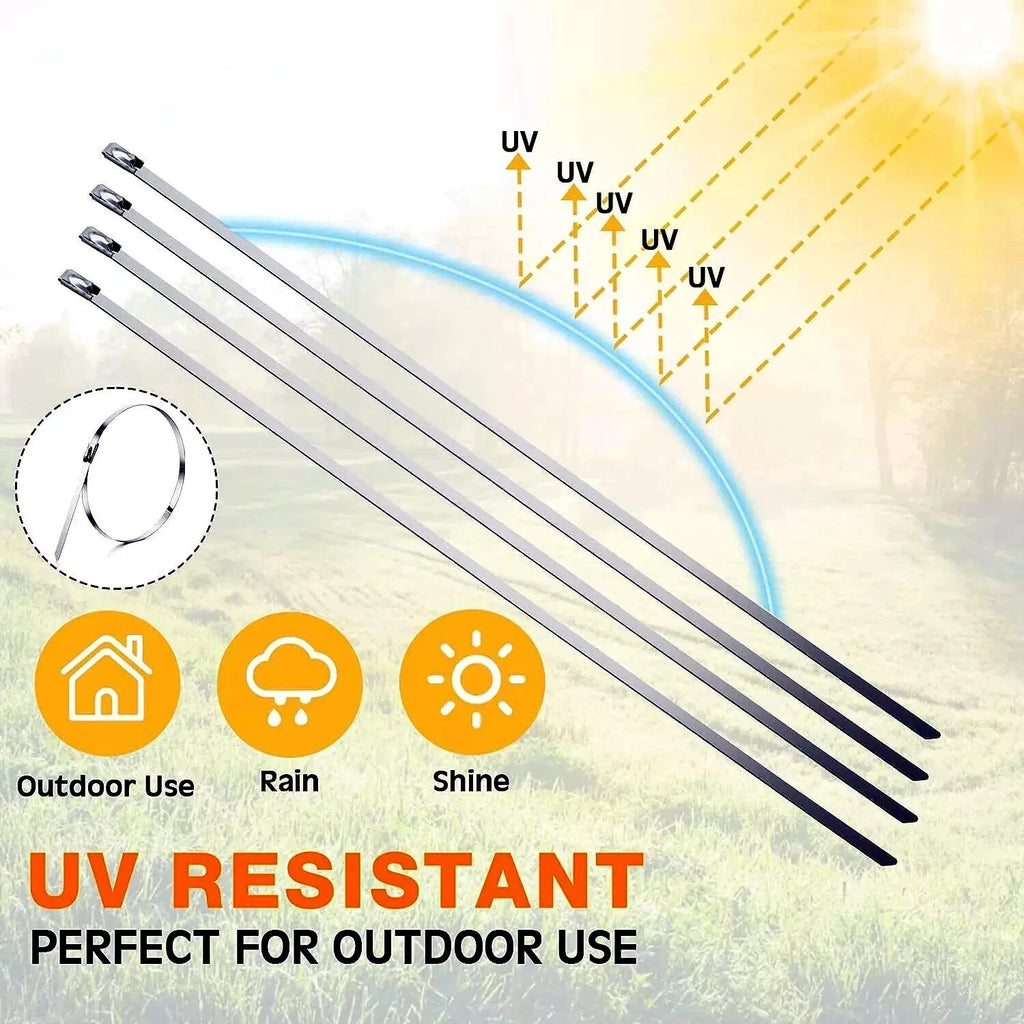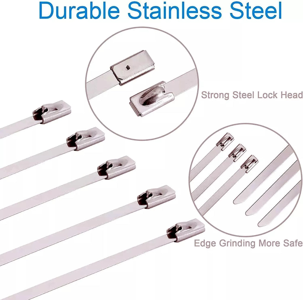 These 304 Stainless Steel Ties Have an Option of Regular 4.6mm (198lb), or Industrial Strength Ties with a Width of 12mm. The Regular Size 4.6mm Ties have a Tensile Strength of 198lbs, and the 12mm Ties Can Hold Over Twice that much with a Tensile Strength of 400lbs, which is 200lbs More than the 4.6mm Wide Ties. These Ties are Industrial Quality, Made for the Toughest of Jobs, and the Longest Lifespan of the 304 Stainless Allows them to Withstand even the Harshest Weather Conditions & Extreme Temperatures.
