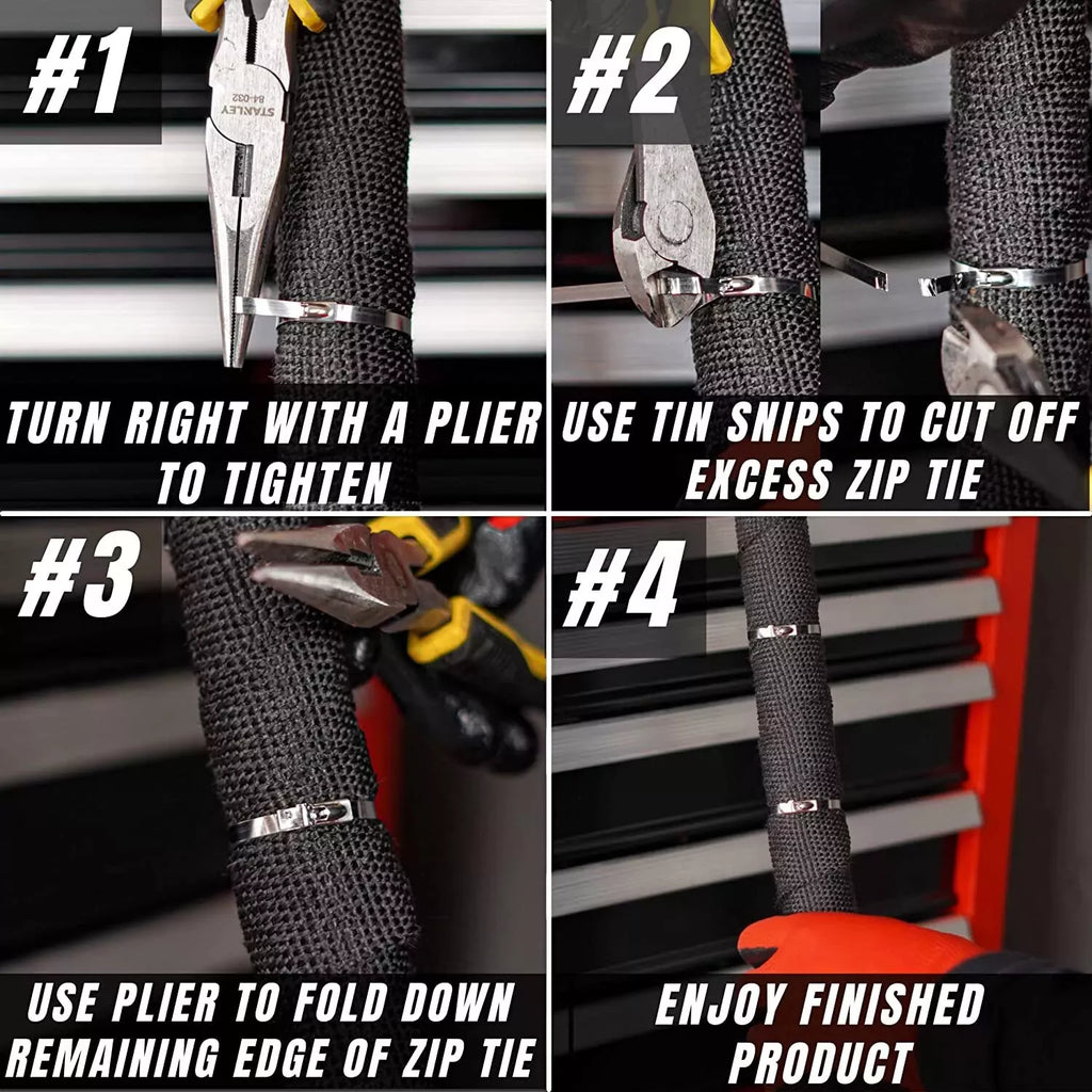 For Commercial Applications, or Everyday Use, a Stainless Steel Zip Tie Gun would be the Most Efficient way to Save Time. You can find them online relatively cheap. But if you're just doing a a Project that Doesn't Require too many, Simply Place a Small Micro Sized Screwdriver against the Ball when using Pliers to Tighten. This will Ensure it Locks Tight & will Not Move.